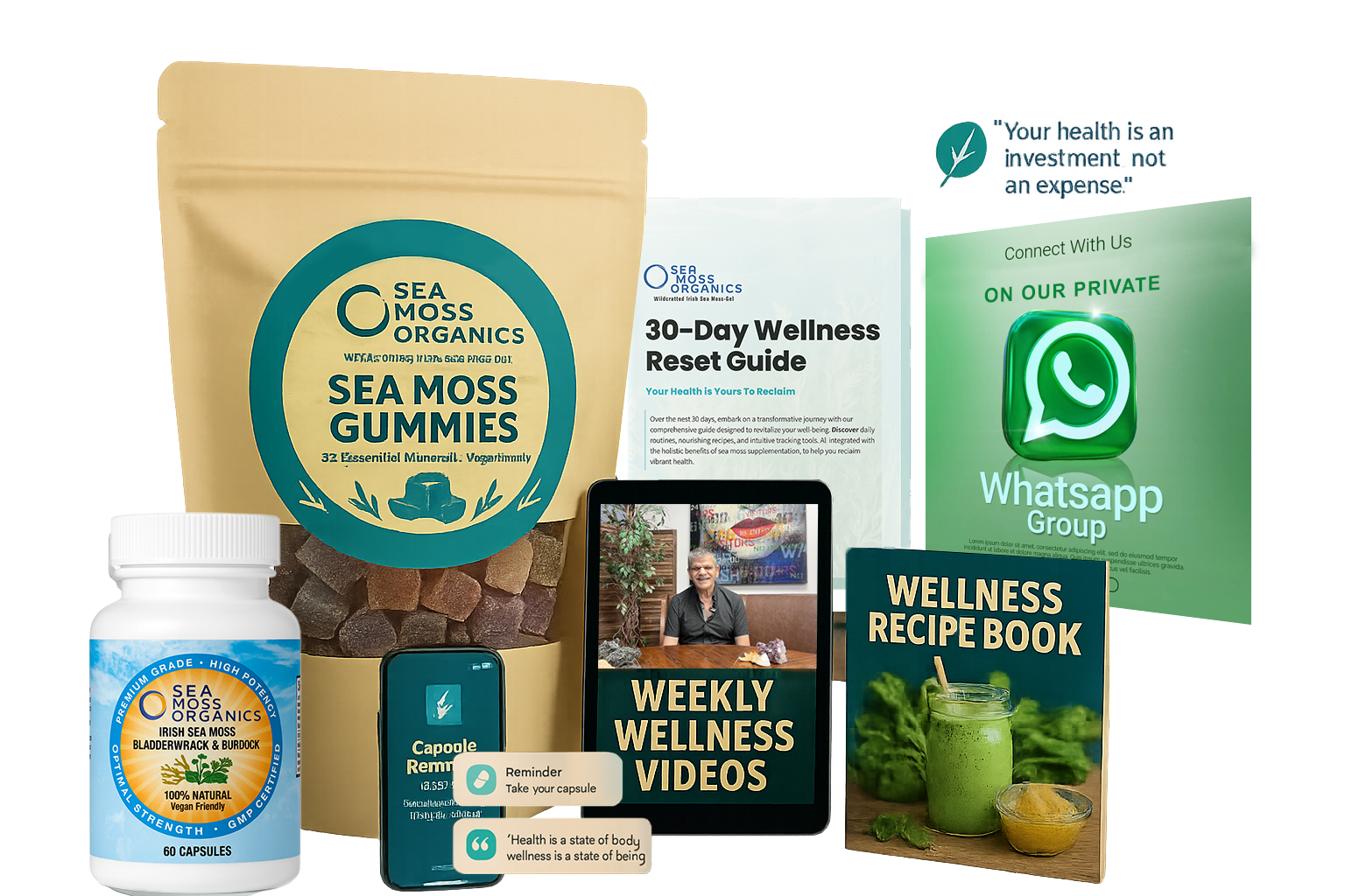 • Sea Moss Capsules (30-day supply) — concentrated mineral support for daily wellness