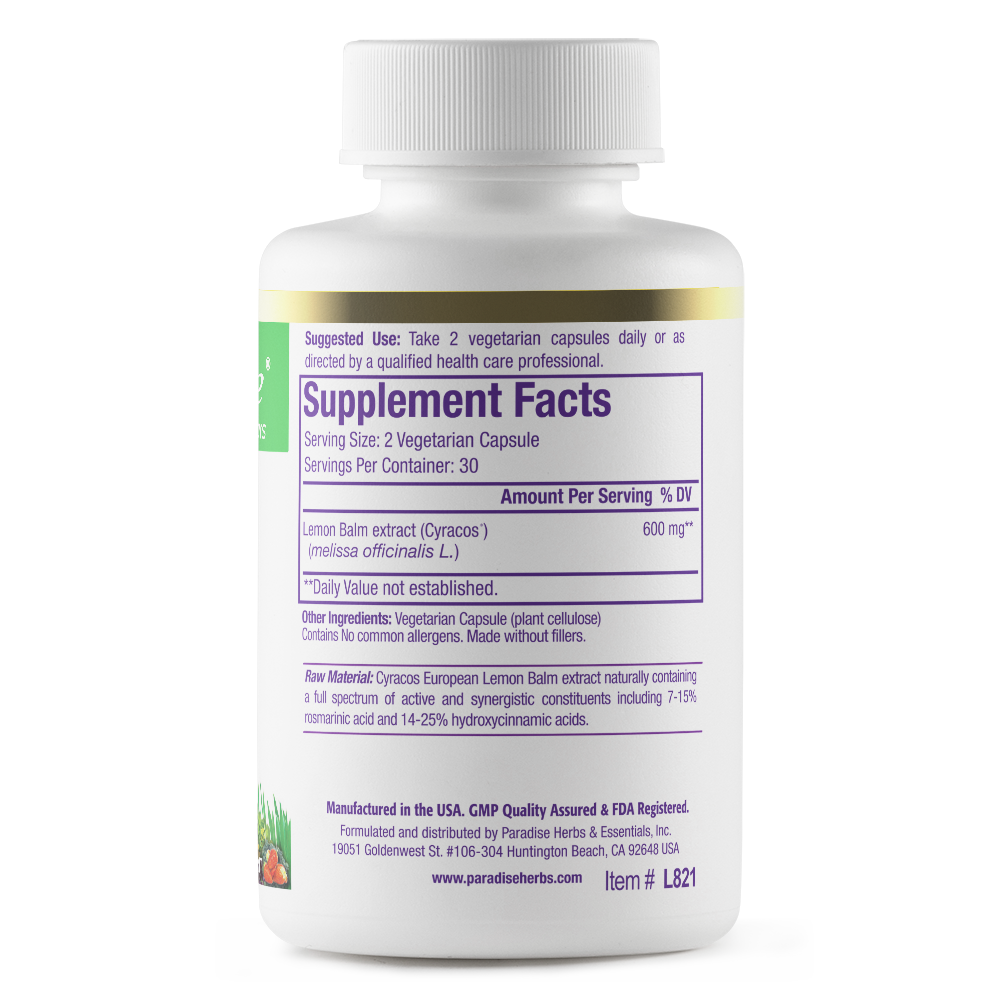 Many studies have tried to identify the active compounds in lemon balm providing the anti-stress activity and researchers have noted that when isolated fractions are separated from the whole herb they tend to lose their activity, which is why taking a full spectrum herb like Paradise is so important.**